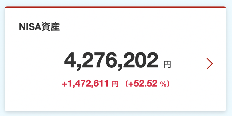 楽天証券の口座を確認したところ、2026年2月5日時点でのNISA口座の資産額は4,276,202円。430万円弱でした!