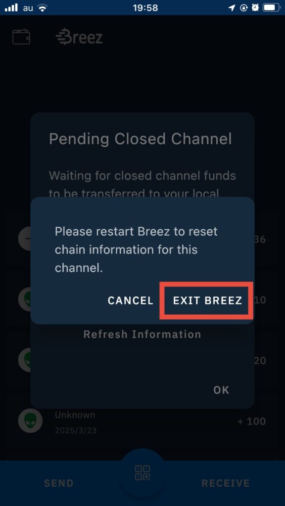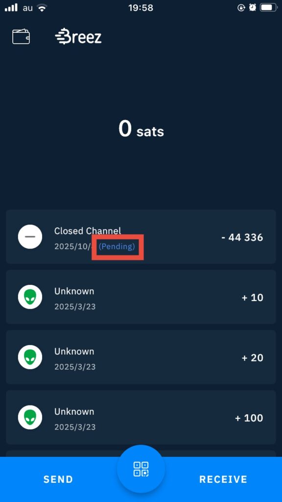 ビットコインのライトニングウォレットBreezを使っていましたが、先月の初めにチャネルがクローズしていることに気づきました。