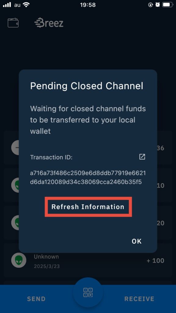 実はチャネル閉鎖に気づく1〜2ヶ月前から、Breezから資金を引き上げるために出金を試していました。